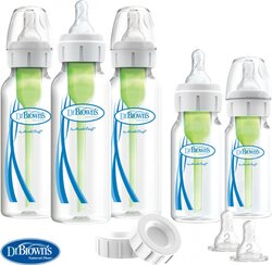 Dr. Brown’s Novorodenecká sada Options+. Klinicky dokázané, že redukuje výskyt koliky, grganie, zvracanie a nadúvanie. Prispieva k pokojnejšiemu spánku dieťatka.- Použiteľná s alebo bez ventilu.