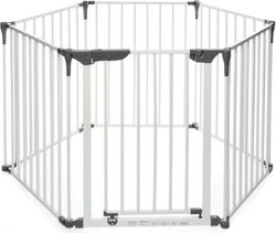 Tento mimoriadne univerzálny produkt je ideálny na použitie ako ohrádka, rozdeľovač miestností alebo dokonca ako krbová bariéra. Dodáva sa so 6 modulárnymi panelmi vrátane pohodlnej priechodnej brány. Pred pripevnením panelov na miesto ho môžete ľahko nakonfigurovať tak, aby vyhovoval rozloženiu vášho domova. Kompaktný dizajn je možné zložiť pre ľahké skladovanie a prenosnosť.