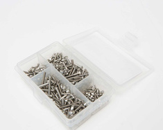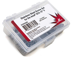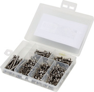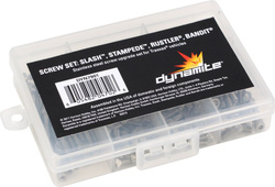 Dynamite sada nerezových skrutiek, matíc a podložiek pre 2WD RC modely áut Traxxas Slash, Stampede, Rustler, Bandit. Dodáva sa v plastovej krabičke, celkom 177 kusov.