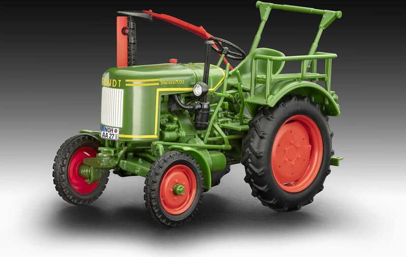 Model F20 Dieselrß byl důležitým milníkem v historii zemědělství 50. let 20. století. Jako nový traktor střední třídy přinesl na pole výkon 20 koní se svým vodou chlazeným jednoválcovým motorem o objemu 1,5 litru – robustní, spolehlivý a inovativní. Jméno „Dieselroß“ symbolizovalo kvalitu a technickou přesnost z tehdejšího Německa i dnes. S tímto modelem si domů přinesete kus technologické historie – dokonale implementovaný pro stavbu modelů.