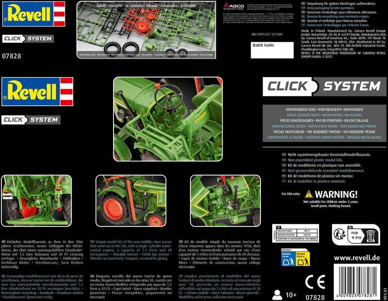 Zacvakávací model traktoru. Velikost: 1:24; 11,7 cm. Balení obsahuje 91 dílků ke složení modelu.Informace o modelu: