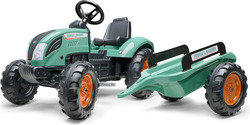 Francúzska spoločnosť Falk predstavuje vynikajúci traktor pre deti. Má autentický dizajn a je ako skutočný. Traktor je vybavený veľkým prívesom a pedálmi. Traktorový príves sa pripája k podvozku pomocou upevňovacej skrutky, ktorú je možné veľmi jednoducho demontovať. Aby bola hra ešte zábavnejšia, je traktor vybavený aj klaksónom. Kolieska sú dostatočne široké, aby zabezpečili dokonalú stabilitu pri pohybe.