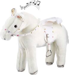 Ak vaša bábika vždy túžila po koníkovi, potom je tento roztomilý plyšový poník so zvukovým čipom pre ňu dokonalým priateľom. Stačí stlačiť tlačidlo a poník zahrá erdžanie, frkanie a zvuky cvalu. Sedlo a uzda sú ozdobené kamienkami (rhinestones), čo vyzerá nádherne!