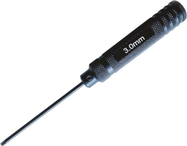 Kvalitný imbusový skrutkovač H-Speed o veľkosti 3.0 mm má hliníkovú rukoväť s protišmykovým krížovým ryhovaním o dĺžke 92 mm a priemere 18 mm s plastovou otočnou zadnou opierkou a dĺžkou dříku 84 mm. Uchytenie dříku v rukoväti nastavovacím skrutkou.