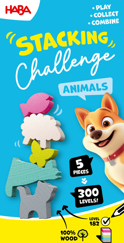 Haba Dynamická zábavná hra Stacking Challenge Zvieratá 5 figúrok 300 zadaní