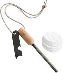 Stačí pretiahnuť kresadlo cez ohnivú tyč a iskry zapália pripravený vatový tampón napustený voskom. Zapaľovacia oceľ vydrží niekoľko tisíc zážihov a funguje spoľahlivo aj v nepriaznivých podmienkach – pri vlhku či chlade. Skvelý doplnok pre kempovanie, výlety a dobrodružstvá v prírode.