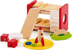 Jedná sa o vybavenie izbičky v domčeku pre bábiky, kde nechýba poschodová posteľ, stolík so stoličkami, podložka na hranie a hračky.