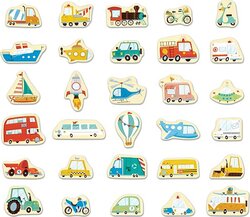 Keď sa deti učia o rôznych spôsoboch dopravy, môžu si na základe vozidiel vytvárať vlastné príbehy, čo zvyšuje ich jazykové a komunikačné zručnosti. Možno používať na stojane Hape alebo ako hračku na chladničku, tieto magnety priľnú na akýkoľvek kovový povrch.