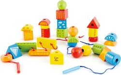 - Balenie obsahuje 30 drevených tvarov a 2 farebné šnúrky.