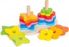 Pestrofarebná skladacia dúha ponúka dva tvary a deväť farieb pre nekonečné možnosti pre stohovanie a triedenie. Vytvorte farebný vzor pomocou jedného tvaru. Nechajte potom svoje dieťa vytvoriť rovnaký vzor s iným tvarom.