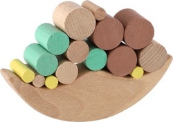 Zaujímavá šikovnosť hra Balansujúce drevo. Hra spočíva v usporiadaní čo najväčšieho počtu farebných, rôzne veľkých blokov na drevo v tvare mesiaca.