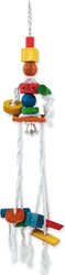 Závesná drevená hračka s povrazmi, vhodná pre drobné exotické vtáctvo.
