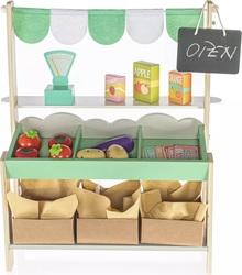 Stánok s ovocím a zeleninou pre detiVytvorte si vlastný trh priamo v detskej izbe s týmto čarovným dreveným stánkom s ovocím a zeleninou. Tento autentický stánok vyzerá ako zo skutočného trhu a poteší dievčatá aj chlapcov. Deti sa zabavia pri predaji krásne vyzerajúceho ovocia a zeleniny vo svojom malom obchodíku.