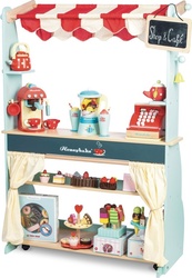 Krásny predajný pult vyhral mnoho ocenení, obľúbená hračka mnohých detí. Obojstranná hračka 2 v 1 deti nadchne a rozpáli ich predstavivosť. Dizajnované tímom talentovaných hračkárov, deti si budú užívať hranie na role každým dňom. Deti môžu postaviť café stánok a obslúžiť zákazníkov alebo pult otočiť a vytvoriť z neho stánok tržný, má mnoho políc, do ktorých môžete uložiť debničky s potravinami od Le Toy Van. V balení tiež otočná tabuľka na kriedu, textilná nákupná taška a zvonček, na ktorý môžu zákazníci zazvoniť. Hračka deti podporí v skorom rozvoji, pomôže s rozvojom sociálnych zručností, reči, rozprávačstva, tiež striedanie sa na rade, a to všetko počas predstavivej hry. Hračky s účelom Všetky hračky firmy Le Toy Van sú vyrobené s cieľom - aby dlho vydržali. Dizajnované s láskou skúsenými remeselníkmi za použitia etických praktík a udržateľných materiálov, ktoré sú láskavejšie k našej planéte. Hlavné vlastnosti: drevený predajný stánok/café s interaktívnymi doplnkami  kolieska a stabilizátory pre jednoduchú manipuláciu vyrobené eticky z udržateľného dreva  testované podľa najprísnejších štandardov maľované netoxickými farbami na báze vody inšpiruje ku kreatívnej a predstavivej hre Ocenenie hračky:Junior Design Bronze Award 20 Best Toy Award Winner 2017 Honeybake kolekcia: Hračky v tejto kolekcii sú vhodné na objavovanie, pomôžu deťom s rozvojom predstavivosti, sociálnych a verbálnych zručností a kognitívnych funkcií. Tradičný dizajn s modernými detailmi deti určite bude baviť. Honeybake je kolekcia Le Toy Van, ktorá vyhrala najviac ocenení, a to za dizajn, kvalitu, bezpečnosť a tiež za vzdelávaciu a hernú hodnotu. Vek: 3+