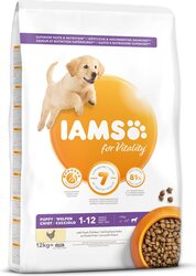 Krmivo IAMS for Vitality pre šteňatá veľkých plemien je 100% kompletné a vyvážené odborníkmi zostavené krmivo, ktoré bude vášmu šteňaťu svedčiť. Naša nová a vylepšená receptúra ??pre šteňatá s čerstvým kuracím mäsom je založená na kvalitných živočíšnych bielkovinách, ktoré boli starostlivo vybrané, aby podporovali sedem znakov zdravej vitality šteňaťa. Aby boli šteňatá zdravá, aktívna a plná energie, obsahujú naše lahodné receptúry až 81% živočíšnych bielkovín z kuracieho mäsa (z celkového obsahu bielkovín).
