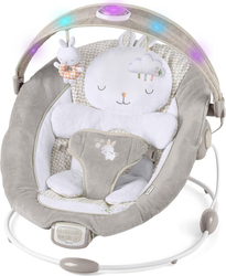 V lehátku Ingenuity Twinkle Tails bude mať bábätko pocit, že je v bezpečnom náručí a tým získa mamička potrebný čas na oddych. Toto lehátko pomáha udržať vaše dieťatko v pokoji a v bezpečí a zaručí mu maximálny odpočinok alebo zábavu. Pohodlná sedacia časť obsahuje vyberateľnú novorodeneckú vložku v tvare zajačika, ktorú môžete využiť ako samostatnú podložku na hranie alebo prebaľovanie. Dieťatko zaujmú jemné svetlá, ktoré tancujú na strieške s hrazdičkou, ktorá navyše obsahuje 2 roztomilé hračky. Príjemné melódie, zvuky prírody, biely šum a jemné vibrácie upokoja každé dieťatko.