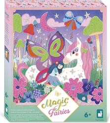 Princíp tejto sady je jednoduchý: odlepte fóliu z penových nálepiek a zasypte ich pieskom, čím vytvoríte nálepky s atraktívnym reliéfnym efektom. Potom odstráňte pieskové nálepky z papiera a umiestnite ich na príslušné miesta obrázku. Pre ešte väčší lesk pridávame trblietavé nálepky! Pomaly sa obrázky rozsvietia: v rozprávkovej záhrade žijú najmenšie a najmajestátnejšie zvieratá v súlade s rytmom prírody. Vďaka tejto sade si deti môžu vychutnať pokojnú aktivitu v úplnom kľude, bez obrazoviek a naplno prejaviť svoju kreativitu! Kombinácia embosovaných penových nálepiek, pútavých farieb a trblietok dodáva ilustráciám očarujúci vzhľad. Zdobenie každého obrázka trvá približne 10 minút. Strávte teda pokojný čas v rozprávkovom lese! Objavte svet kolekcie "Magic Fairies", radu jemne kvetinových, kreatívnych sád na hobby a workshopy pre deti s tematikou rozprávok. Pre snové tvorivé popoludnia!