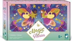 Kreatívna sada Magic Glitter Fairies francúzskej značky JANOD obsahuje 3 obrázkové tabule so samolepiacim náterom, zobrazujúce rozprávkový svet víl.