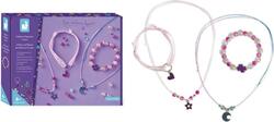 Z obsahu tejto kreatívnej krabičky si deti môžu vyrobiť celkom 2 náhrdelníky a 2 náramky: 4 kúzla, ktoré menia farbu pri kontakte s pokožkou a teplom, 11 trblietavých guľôčok, 16 ružových guľôčok, 2 modré guľôčky, 6 strieborných guľôčok, ružová niť, dúhová niť a 1 stuha s potlačou.