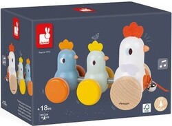 Drevená hračka pre deti vo veku od 18 do 36 mesiacov. Fantastická hračka pre začiatočníkov, ktorá bude vaše dieťa motivovať k tomu, aby sa naučilo chodiť. Keď ich vezmete na prechádzku, matka sliepka a jej mláďatá sa kolíšu a malý zvonček veselo cinká.