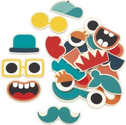 Čiapka, fúzy či okuliare? Aká je najvtipnejšia kombinácia? Vytvorte tú najzábavnejšiu postavičku zmiešaním očí, nosov, úst, okuliarov atď. Táto sada sa skladá z 24 drevených magnetiek, ktoré sa prilepia na magnetické tabule alebo akýkoľvek iný magnetický povrch.