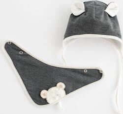Jarná dojčenská čiapočka so šatkou na krk New Baby Sebastian sivá 62 (3-6m)