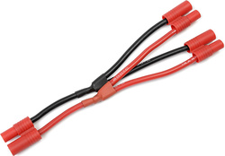 Paralelný Y-kábel s konektormi 3.5mm pozlátený (konektory kolík-dutinka), kábel so silikónovou izoláciou 14AWG, dĺžka 12cm. Vedľa seba sa môžu zapájať iba akumulátory rovnakého typu, rovnakého napätia a rovnakej kapacity!