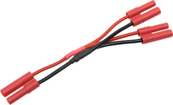 Paralelný Y-kábel s konektormi 4mm pozlátený (konektory kolík-dutinka), kábel so silikónovou izoláciou 14AWG, dĺžka 12cm. Vedľa seba sa môžu zapájať iba akumulátory rovnakého typu, rovnakého napätia a rovnakej kapacity!
