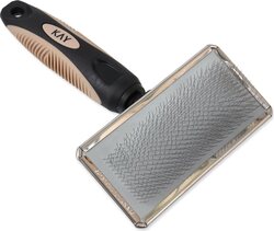 Jednostranná kefa Kay pre psov s príjemne tvarovanou plastovou rukoväťou a jemnými drôtenými štetinami.