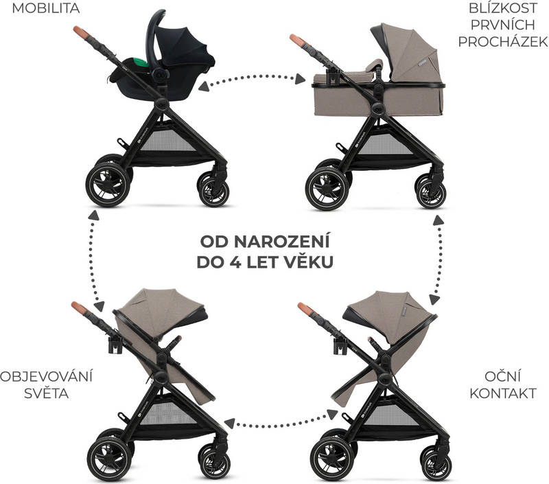 KINDERKRAFT Kočík kombinovaný 3v1 Esme Pro Sand Beige