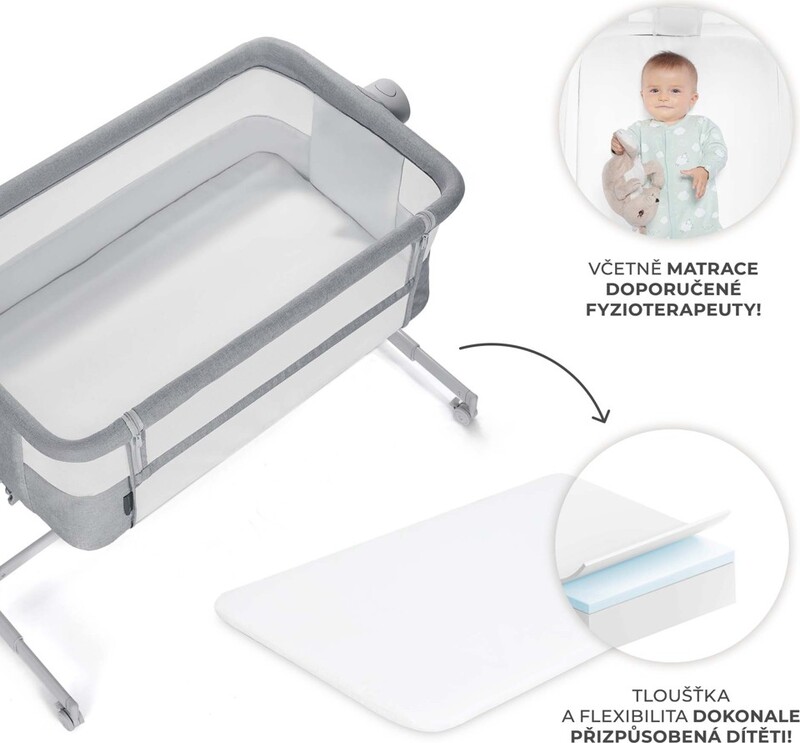 Sada sa dodáva s polotvrdým matracom, ktorý odporúčajú fyzioterapeuti, pretože vďaka nemu vaše dieťa lepšie spí, má pozitívny vplyv na vývoj počas spánku, pretože poskytuje správnu oporu chrbtici a hlave.