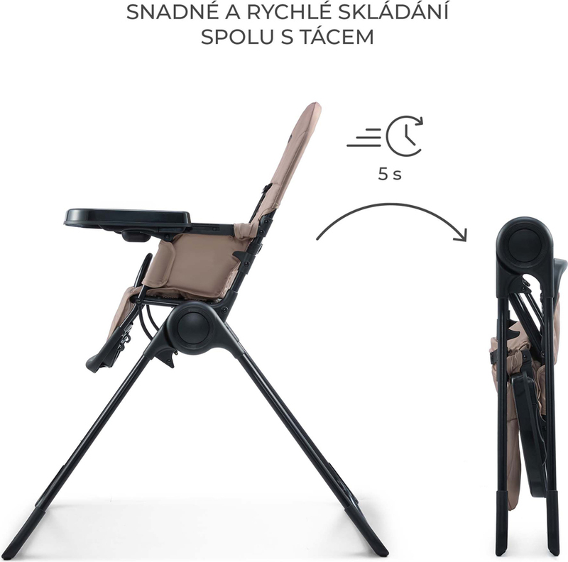 BINCI je skladacia jedálenská stolička, ktorú zložíte jediným pohybom – bez nutnosti demontáže tácky. Je ľahká, stabilná a kompaktná, takže ju ľahko uložíte aj prenesiete.