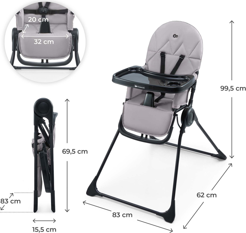KINDERKRAFT Stolička jedálenská Binci Grey