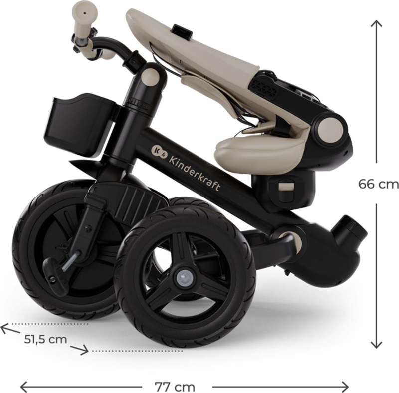 - Rozmery zloženej trojkolky: 66 × 77 × 51,5 cm