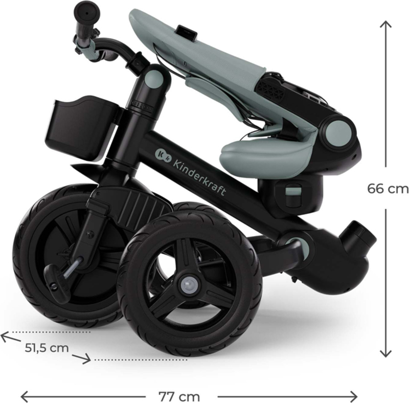 - Rozmery zloženej trojkolky: 66 × 77 × 51,5 cm