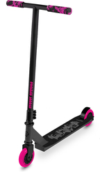 Na tejto atraktívnej a cenovo dostupnej kolobežke si môžu začiatočníci vyskúšať svoje prvé skoky a triky. Konštrukcia vyniká zváranými T riadidlami, oceľovou vidlicou, vystuženou zváranou hliníkovou doskou a trojbodovou objímkou.