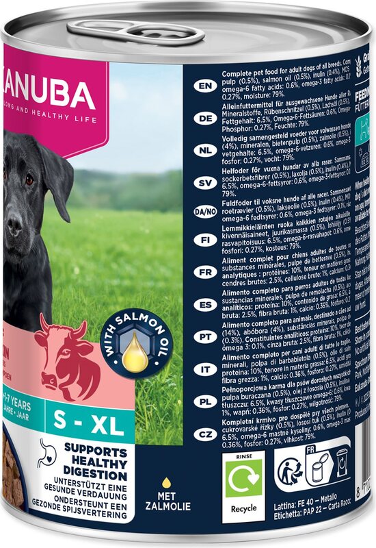 - Tekvica pre rozmanitosť, lososový olej s omega-3, repková dužina, inulín a prebiotiká pre trávenie.