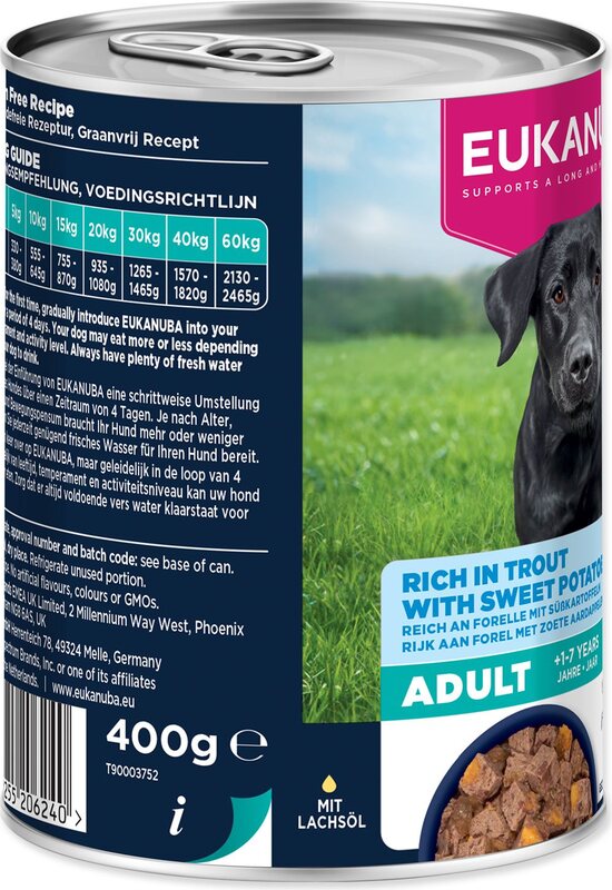 Konzerva EUKANUBA Adult bohatá na pstruha s batátmi 400 g