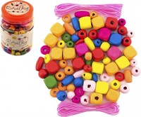 Plastová dóza obsahuje cca 300 ks korálikov. Drevené korálky sú vhodnou hračkou na rozvoj detskej motoriky, trpezlivosti i fantázie.