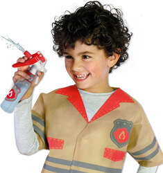 Obsahuje: Hasičská bunda, striekacia fľaša ako hasiaci prístroj, 2 plamene, samolepky.