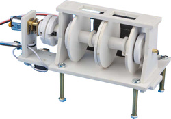 - Motor je zapnutý, trecia spojka je spojená. Na bubon sa navíja reťaz či povrázok. Po dosiahnutí krajnej polohy by mala disková spojka preklzovať (takto to musí byť nastavené tiahlo serva či výchylky kanála vysielača), obsluha by mala v tomto okamihu vypnúť navíjanie motora - prepnúť prepínač do prostrednej polohy.