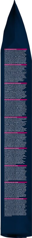 Superprémiové kompletné krmivo pre dospelé psy stredných plemien (10 – 25 kg). Hypoalergénna receptúra s jahňacím mäsom a ryžou. Podpora imunity - Probiotiká podporujú rast pozitívnych baktérií v čreve a tým celkovo stimulujú a podporujú prirodzenú imunitu organizmu. Pestrec podporuje zdravie pečene a zbavuje telo toxínov. Podpora zdravia srsti a pokožky - Lososový olej a rakytník sú výborným zdrojom mastných kyselín a prirodzených antioxidantov potrebných pre harmonizáciu, ochranu a perfektný vzhľad pokožky a srsti Podpora zdravia srsti a pokožky - Lososový olej a rakytník sú výborným zdrojom mastných kyselín a prirodzených antioxidantov nevyhnutných pre ochranu a perfektný vzhľad pokožky a srsti. Podpora telesnej kondície - Jahňacie obsahuje vyvážený pomer esenciálnych aminokyselín, ktoré prispievajú k udržaniu perfektnej kondície svalov a tkanív. Nízky obsah tuku podporuje skvelú kondíciu bez rizika priberania. Podpora telesnej kondície - Jahňacie obsahuje vyvážený pomer esenciálnych aminokyselín, ktoré prispievajú k udržaniu perfektnej kondície svalov a tkanív. Nízky obsah tuku podporuje skvelú kondíciu bez rizika priberania. Zloženie Dehydrované jahňacie (40%), ryža (35%), sušená jablčná dužina, kurací tuk, prírodná aróma, pivovarské kvasnice, lososový olej (2%), hrachová múka, glukosamín (260 mg/kg), frukto-oligosacharidy (200 mg /kg), chondroitín sulfát (200 mg/kg), mannán-oligosacharidy (150 mg/kg), juka schidigera (150 mg/kg), semená pestreca mariánskeho (90 mg/kg), ß-glukány (50 mg/kg) ), sušený srdcovník (50mg/kg), sušený rakytník rešetliakový (50 mg/kg), probiotiká Lactobacillus helveticus HA – 122 inaktivované (15x109 buniek/kg). Analytické zložky Hrubý proteín 26,0%, hrubý tuk 16,0%, vlhkosť 10,0%, hrubý popol 7,2%, hrubá vláknina 2,5%, vápnik 1,4%, fosfor 1,0%, sodík 0,4 %, omega-3 mastné kyseliny 0,5%, omega-6 mastné kyseliny 1,9%, EPA (20:5 n-3) 0,05%, DHA (22:6 n-3) 0,1%. Nutričné zloženie Vitamín A (3a672a) 20000 IU, vitamín D3 (3a671) 1500 IU, vitamín E (3a700) 500 mg, vitamín C (3a312) 300mg, taurín (3a370) 1500 mg, cholínchlór 3a910) 250 mg, vitamín B1 (3a821) 2,5 mg, vitamín B2 (3a825i) 9,6 mg, biotín (3a880) 3,5 mg, kyselina listová (3a316) 1,2 mg, vitamín B6 (3a831) 2 ,5 mg, D-pantoténán vápenatý (3a841) 25 mg, niacínamid (3a315) 32,5 mg, vitamín B12 0,1 mg, jód (3b201) 0,8 mg, organický zinok (3b606) 85 mg, organický 3b504) 40 mg, organická meď (3b406) 18 mg, organické železo (3b106) 75 mg, organický selén (3b810) 0,16 mg. Obsahuje antioxidanty schválené EÚ: tokoferolové extrakty z rastlinných olejov (1b306(i)), askorbyl palmitát (1b304) a výťažok z rozmarínu. Metabolizovateľná energia: 3 810 kcal/kg.