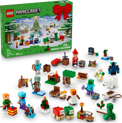 Za každým z 24 dvierok sa skrýva jeden predvianočný darček pre deti. Medzi minifigúrkami nájdete Alex vo svetri Creepera; Steva v svetri so snehuliakom, diamantovej prilbe a krompáčom v ruke; Creepera pri kríku sladkých bobúľ; utopenca s trojzubcom; túlavého kostlivca s diamantovým brnením; snežného golema; zombie so začarovanou sekerou; a dedinčana Santu s pecou. Nechýba tu ani množstvo mini hračkárskych stavebníc a parádnych doplnkov, ktoré deti poznajú z populárnej hry. S blížiacimi sa sviatkami môžu deti skombinovať tieto darčeky a vytvoriť si tak mikro model zimnej dediny Minecraft plný dobrodružstiev. Súčasťou stavebnice je aj rozkladacia hracia podložka, ktorá poskytne dokonalé pozadie.