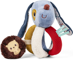 Originálna mäkkučká hrkálka, ktorá malé detské ručičky ľahko uchopí. Psík Jules starostlivo stráži svojho kamaráta ježka Léona. Hrkálka ponúka deťom mix rôznych textúr a aktivít na objavovanie. Zvuk zašité rolničky, šuštiaci papier, schovaný malý ježko. Možno prať v práčke na 30 ° C na jemný cyklus.