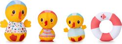 Mamička kačica a jej 2 kačica sa preháňajú na hladine. Mamička kačica pláva veľmi dobre, ale čo jej ratolesti? Ešte potrebujú pár lekcií plávania. Jedno z kačíc neustále ponára hlavu pod vodu, zatiaľ čo druhé sa snaží zostať na hladine pomocou kruhu. S touto kačacou rodinkou si deti užijú mnoho vodných radovánok!