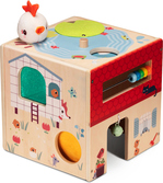 Veľká drevená kocka ponúka deťom od 12 mesiacov niekoľko rôznych aktivít na objavovanie. Počítadlo, zrkadlo, zvonček, labyrint a mnoho ďalších. Súčasťou kocky je sliepočka Paulette, ktorú deti sprevádzajú na jej bláznivých dobrodružstvách na farme.