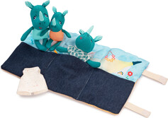 Dečka je obojstranná – na jednej strane môže nosorožčia rodinka tráviť deň plný zábavy na pláži a druhá strana slúži ako postieľka na odpočinok pre celú rodinku. Deti tak môžu prežívať dobrodružstvo s touto nosorožčou rodinkou kdekoľvek na cestách, na dovolenke, na návšteve či u starých rodičov.