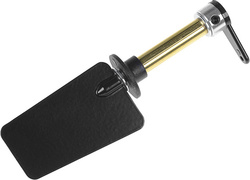 Odporúčané príslušenstvo pre RC modely lodí, Lodné kormidlo kovové lichobežníkové 40x25mm, celková výška 80mm. Z kormidla ide pevná mosadzná hriadeľ 4mm o dĺžke 40mm, na ktorej je červíkom polohovaná plastová páka s hliníkovým puzdrom s osou otvoru vo vzdialenosti 16mm od osi otáčania. Na otočnej trubke 6/4mm je puzdro s priemermi 8/16mm.