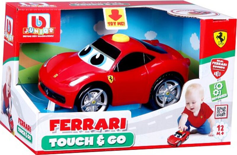 Autíčko Ferrari 458 Italia so zvukmi BBJunior z radu Touch & Go. Po stlačení tlačidla sa jasne červené Ferrari rozbehne a svojim realistickým zvukom motora rozžiari detské oči.