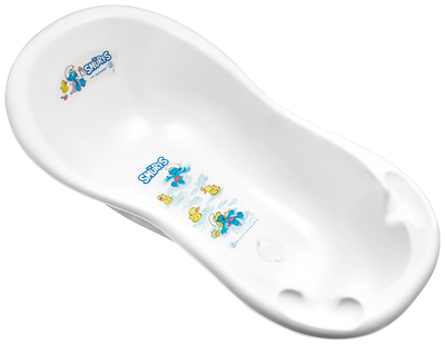 Dizajnová vanička z kolekcie Šmolkovia s dĺžkou 100 cm má ergonomický, aerodynamický tvar a široké okraje, vďaka čomu sa ľahko drží, prenáša a je veľmi stabilná.